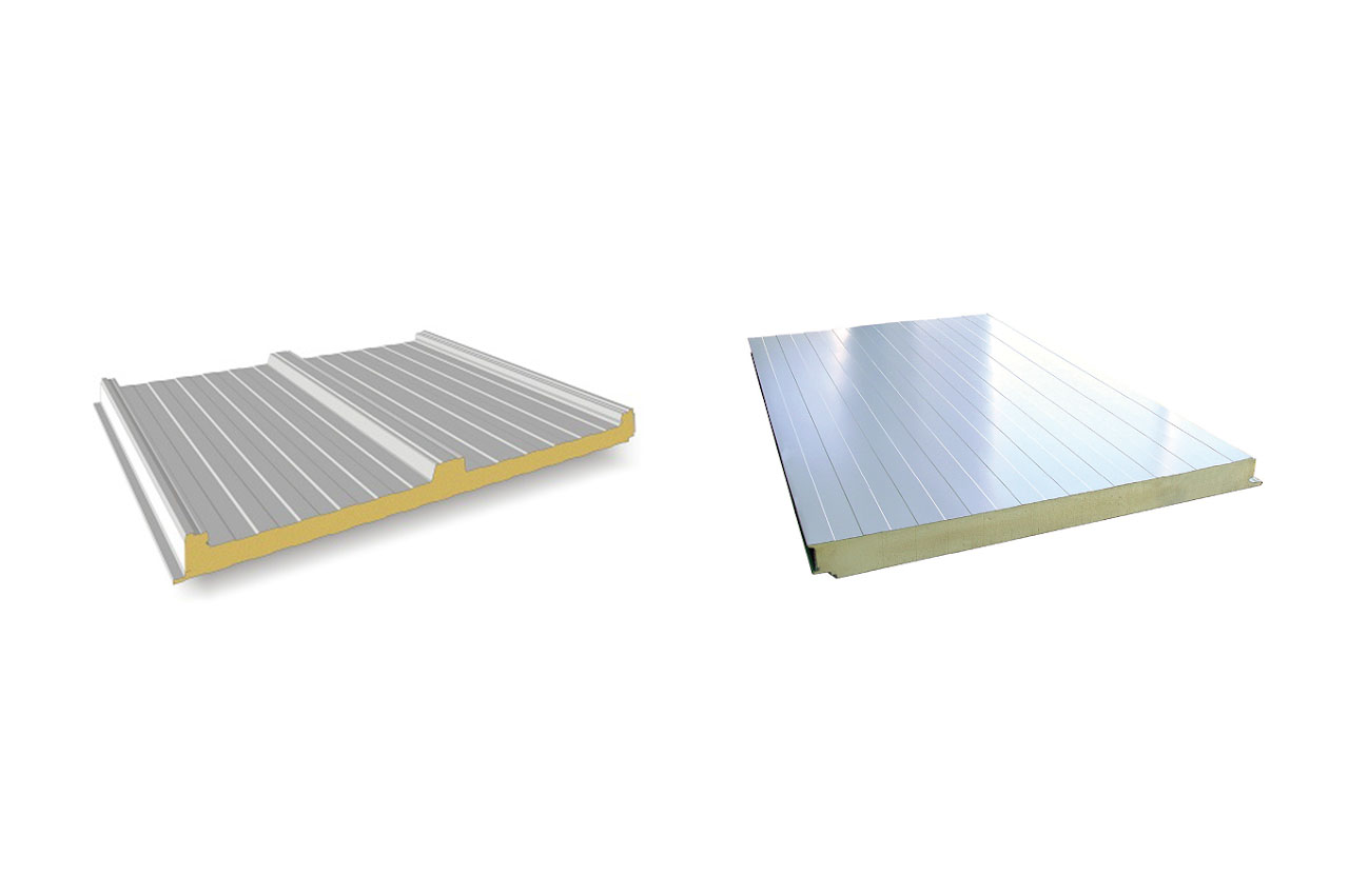 Panel aislante para cubiertas a exteriores tipo sándwich para uso en refrigeración industrial o techos de naves en espesores desde 1.5” hasta 4”.